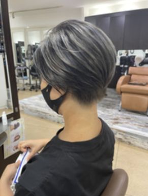 アッシュグレーハイライト ショートスタイル