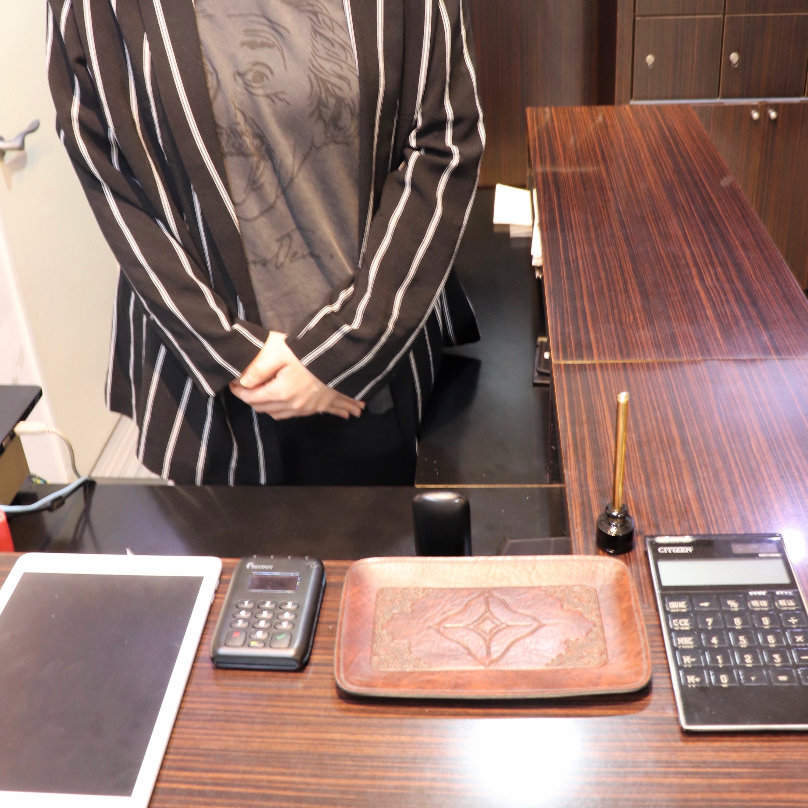 - 受付で名前をお伺いいたします。